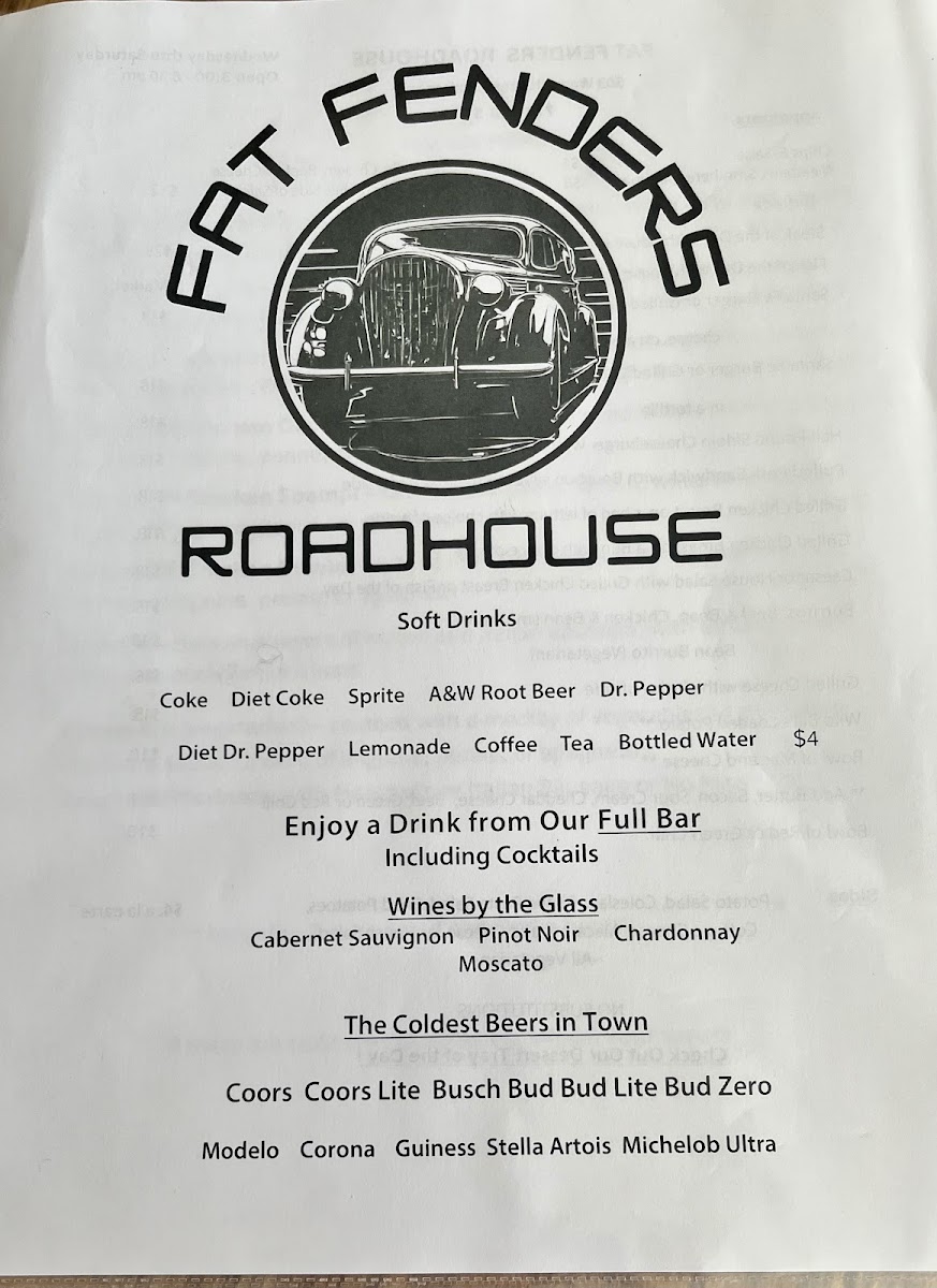 Overall, the Fat Fenders Roadhouse Menu provides a wonderful mix of traditional favorites and regional specialties, making it a perfect spot for a casual meal or a relaxed evening out. Whether you're stopping by for a quick bite or a leisurely dinner, the combination of flavorful entrees, classic sandwiches, and refreshing drinks ensures there's something to satisfy every palate.